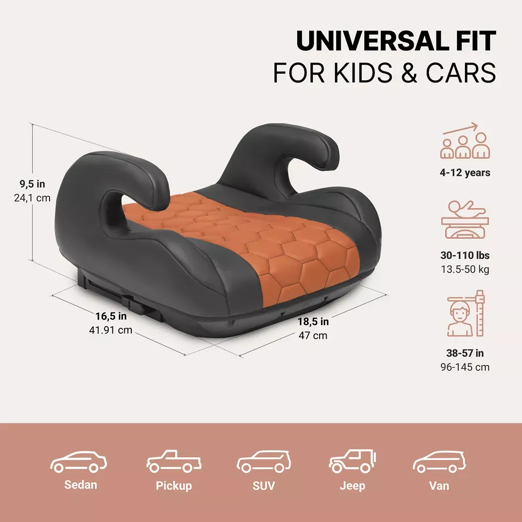 Our child booster seat has been FMVSS 213 crash tested to meet all requirements and ensure safe transportation of children. Plus, it is made from vegan, recyclable, and non-toxic materials.