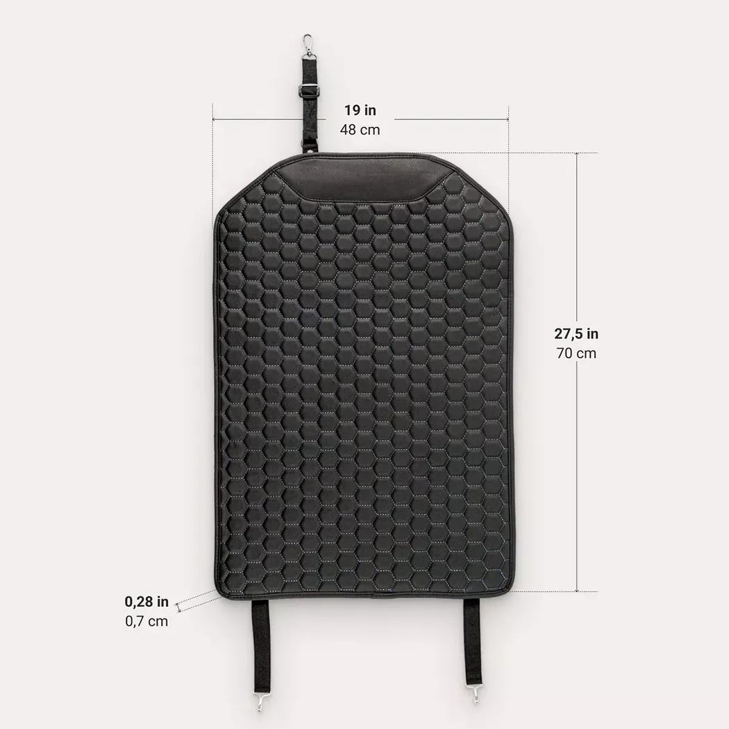 Featuring a sophisticated solid black color with a hexagonal pattern, our seat back protector fits seamlessly into any car interior. It not only guards your seat upholstery against dirt and shoe marks but also adds a touch of style.