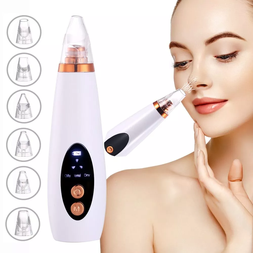 Each Electric Rechargeable Blackhead Remover is made of plastic comes with a USB charging cable and six extra nozzle heads to treat the face and body.